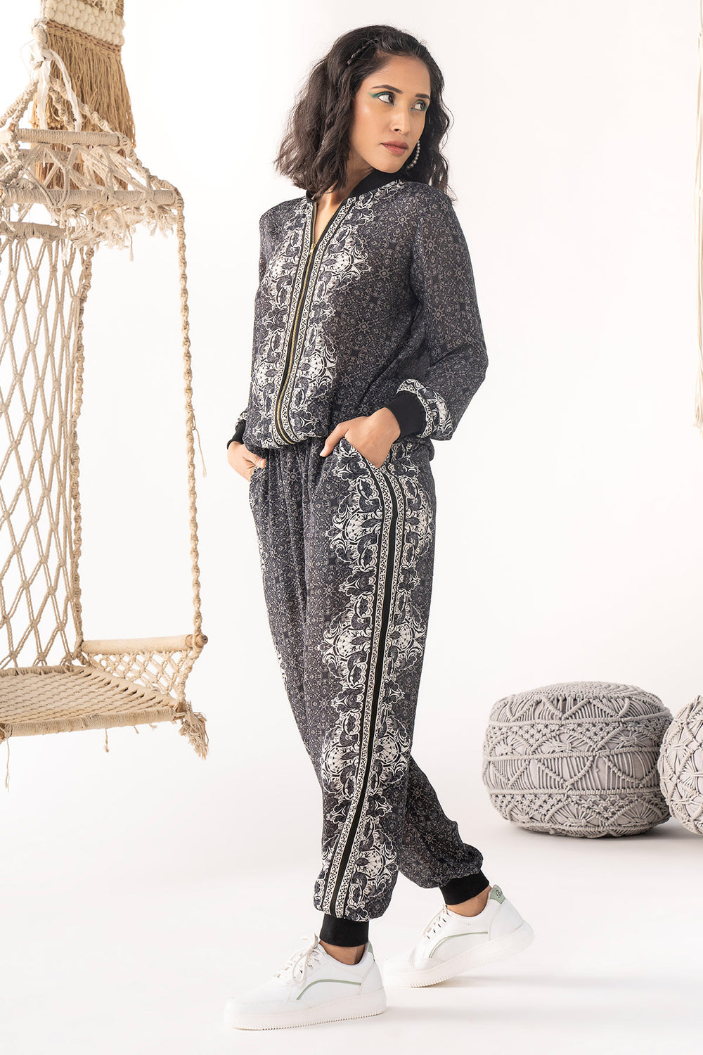 Black Printed Jogger Set