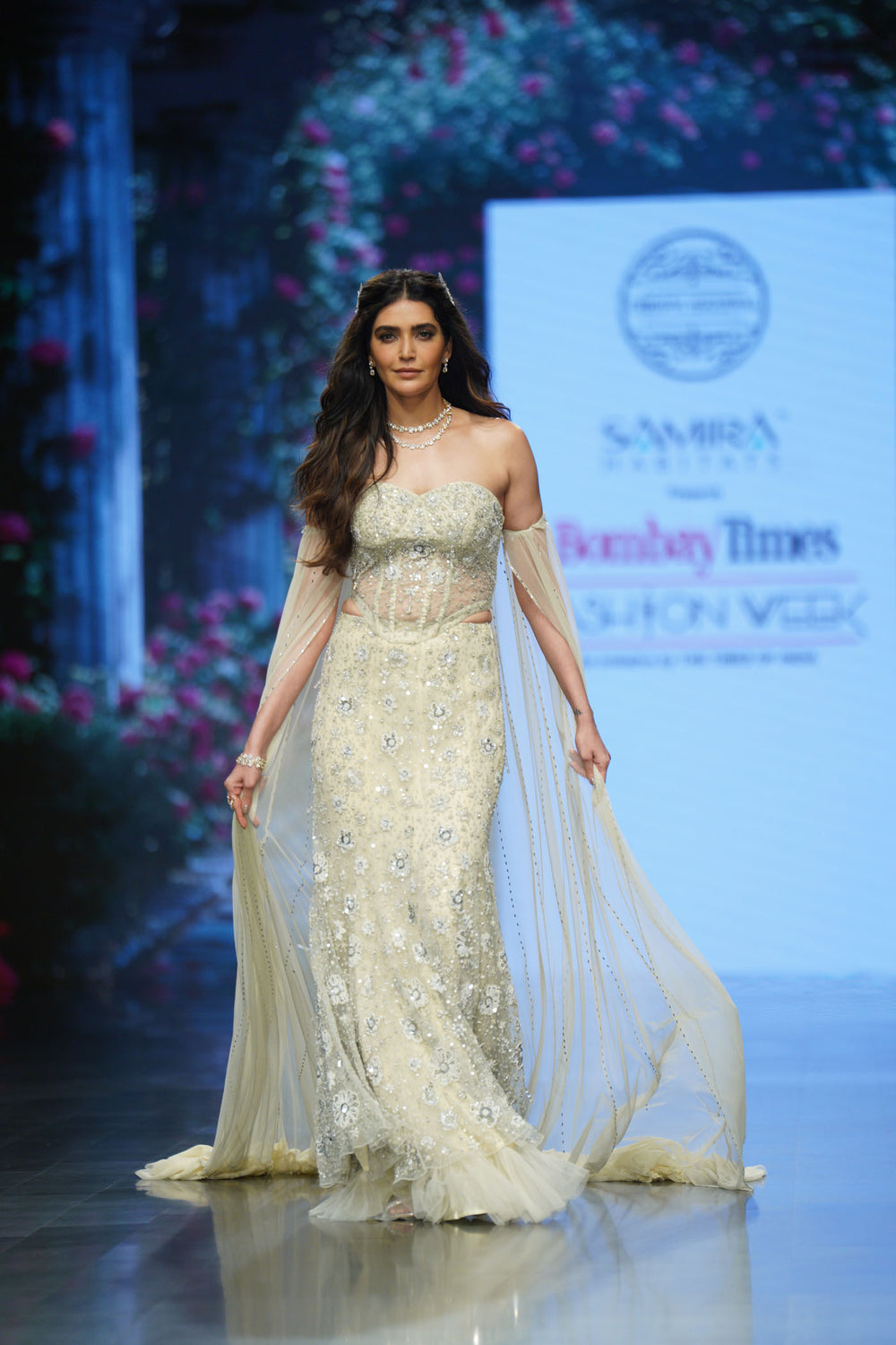 Karishma Tanna in Ivory Lehenga with Corset Blouse