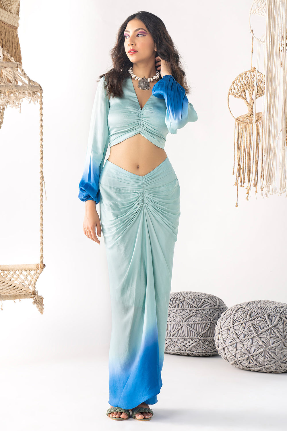Featuring here a aqua blue ombre skirt , paired with a ballon sleeve top
