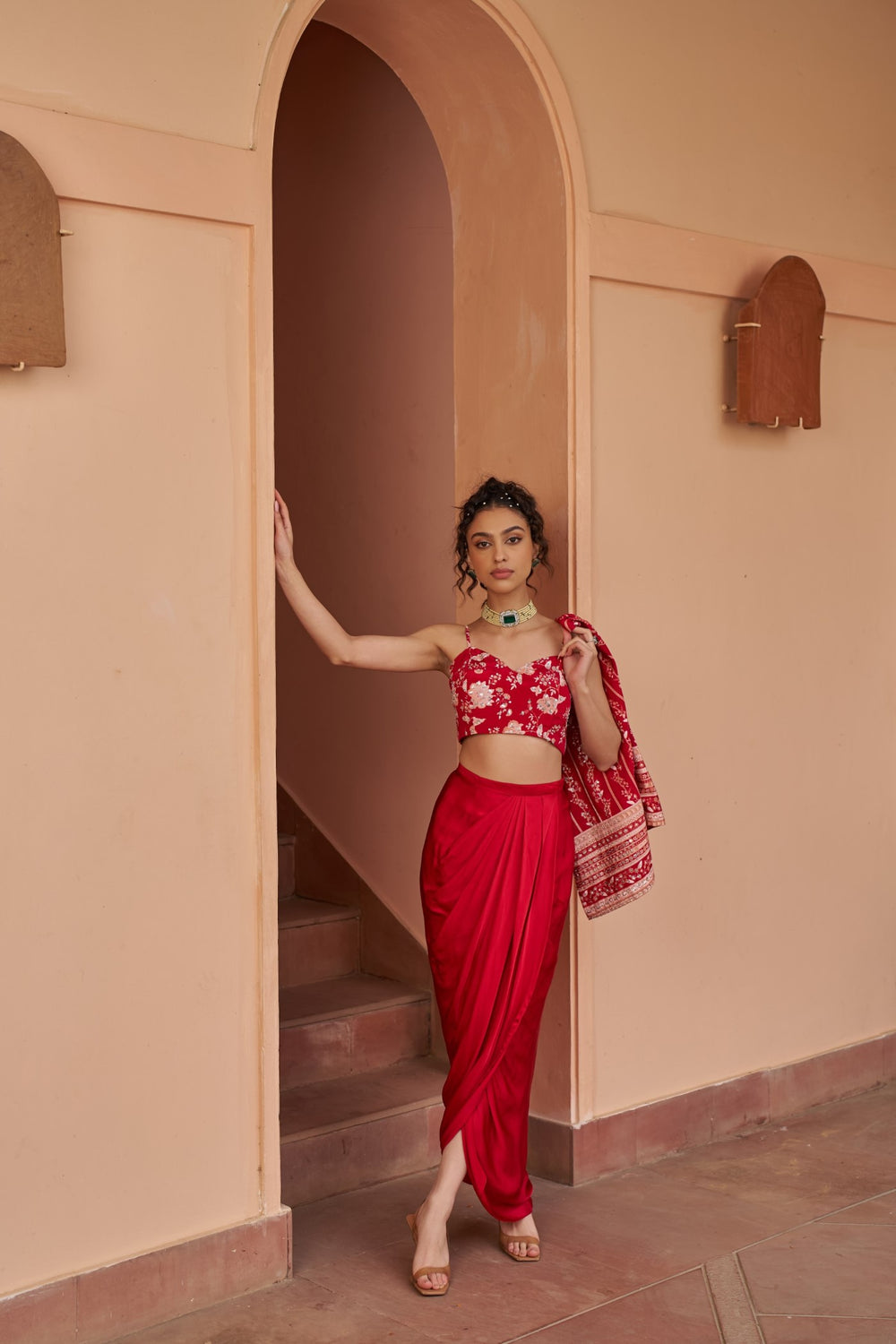 Featuring here a red embroidered cape. It comes with an hand embroidered inner and satin