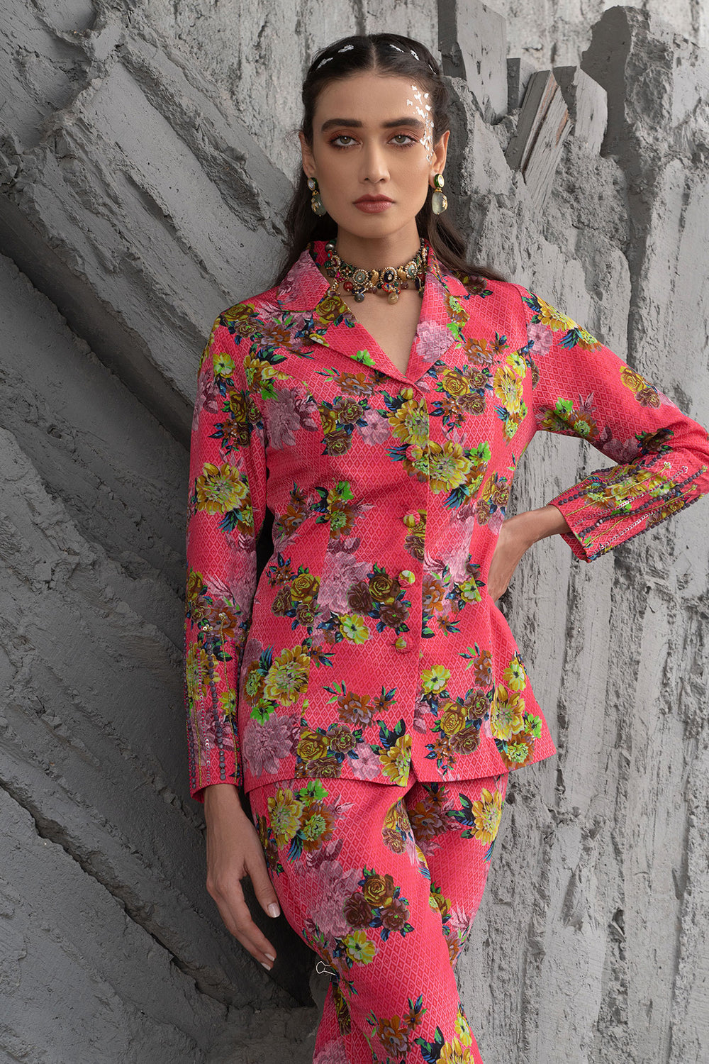 Featuring a raspberry pink co-ord set. This set has an embroidered sleeves