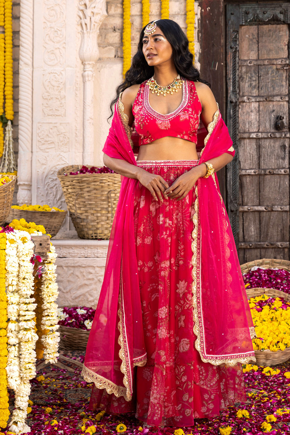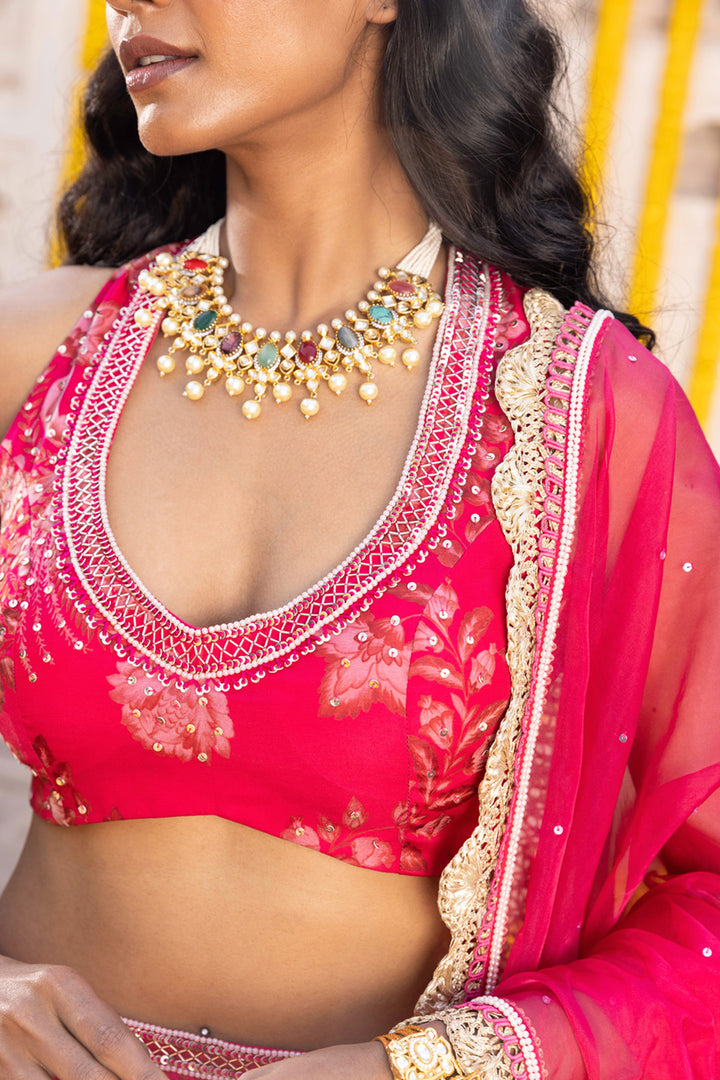 Hot Pink Printed Lehenga Set